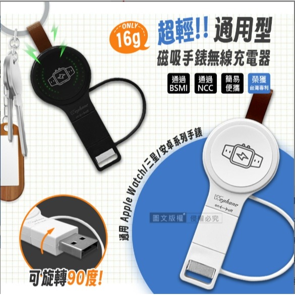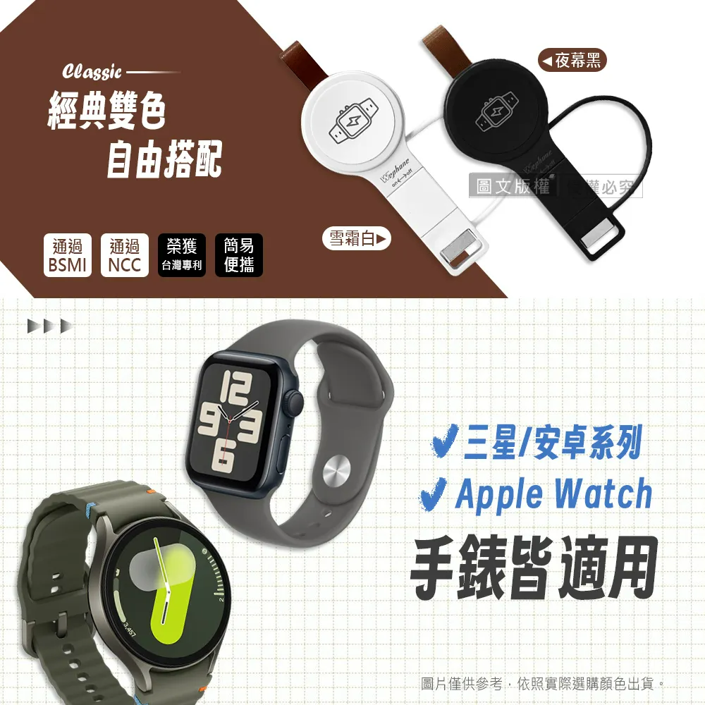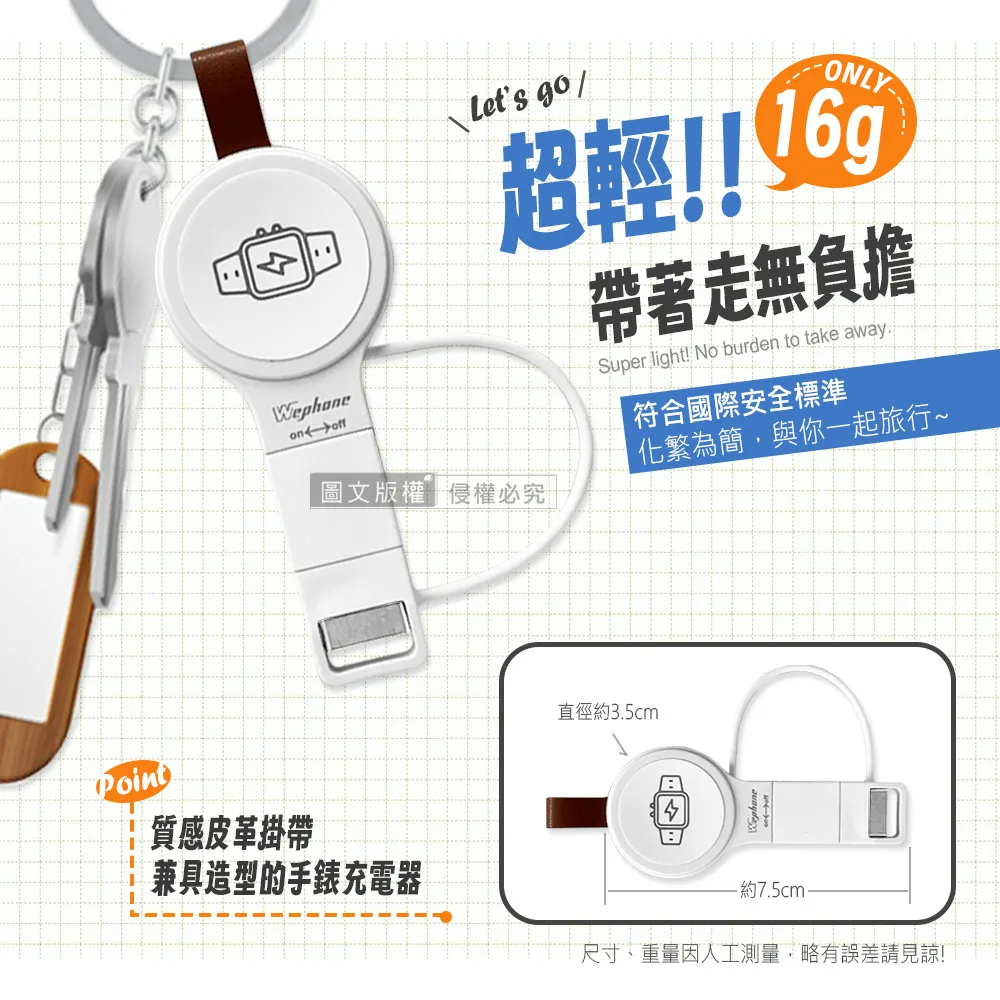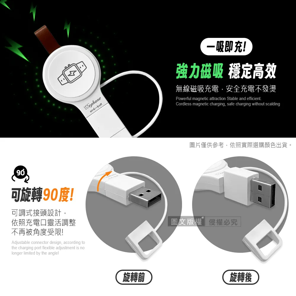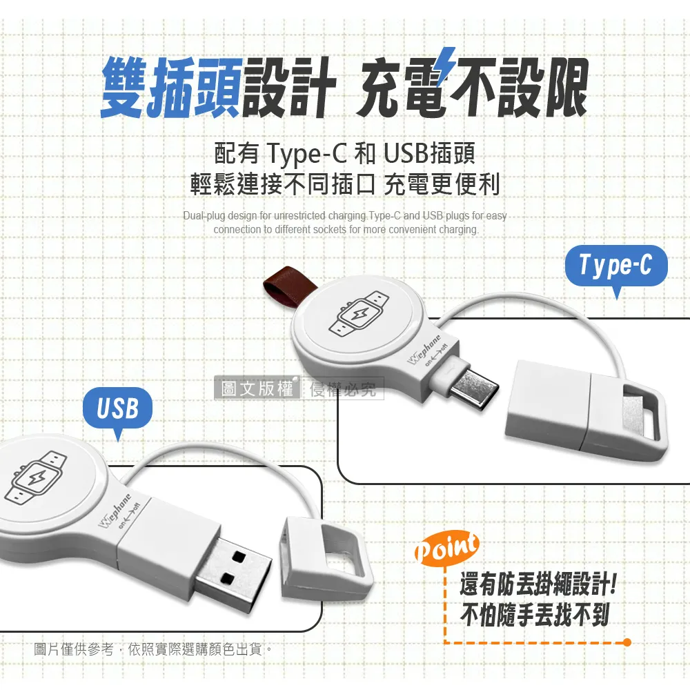 WEPHONE輕量便攜 磁吸手錶無線充電器 USB/Type-C雙接頭 適用蘋果/三星/安卓全系列
