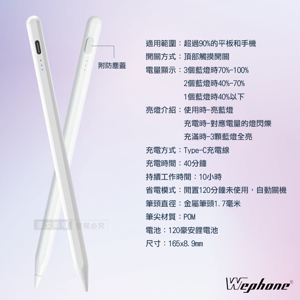 Wephone 即開即用 充電式觸控筆 iPad/安卓磁吸主動式電容筆