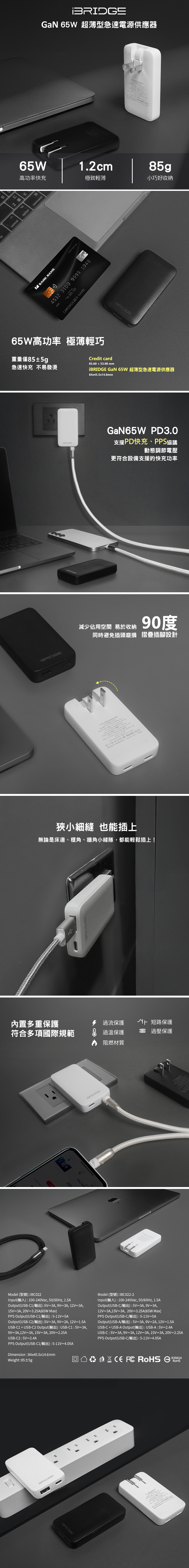 【iBRIDGE】 GaN 65W 超薄型急速電源供應器