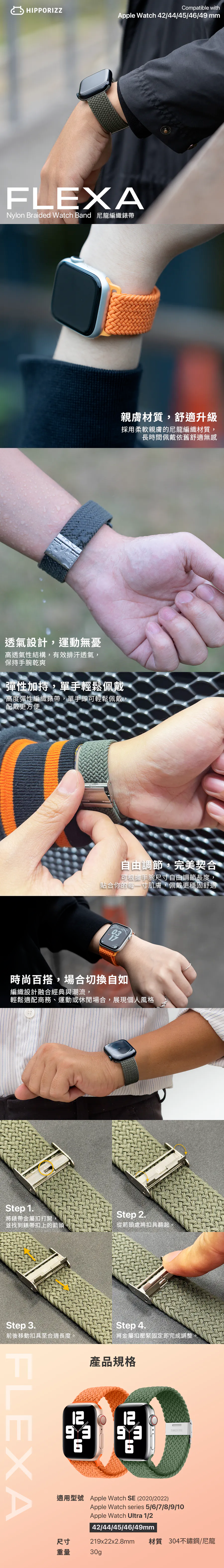 Hipporizz | Apple Watch Flexa 尼龍編織錶帶 (42/44/45/46/49mm)