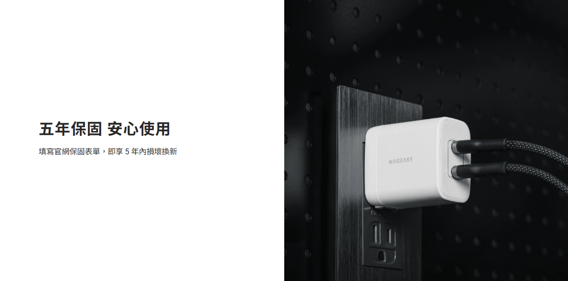 • 填寫官網保固表單,即享 5 年內損壞換新