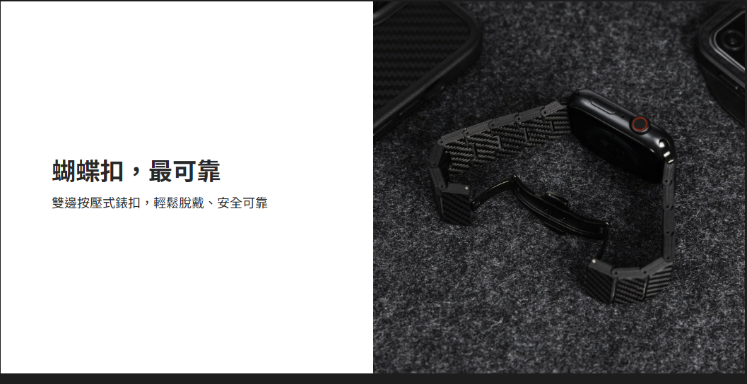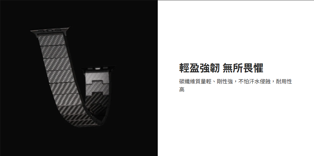 • 100% 純碳纖維製作鏈帶- 碳纖維質量輕、剛性強,不怕汗水侵蝕,耐用性高