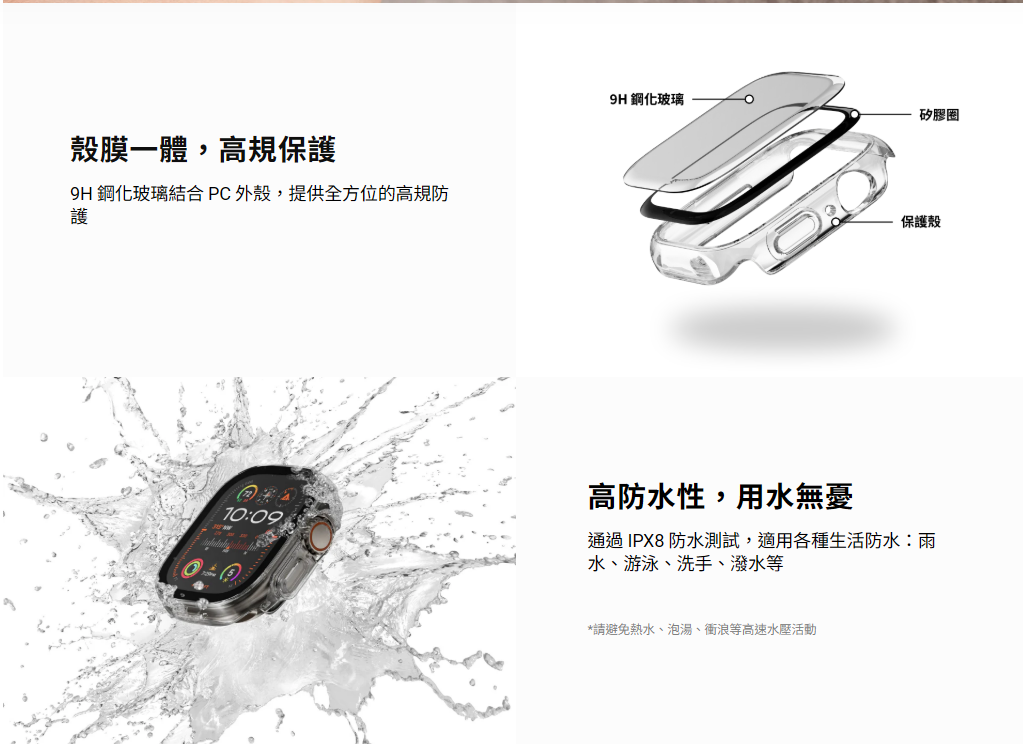 通過 IPX8 防水測試,適用各種生活防水:雨水、游泳、洗手、潑水等