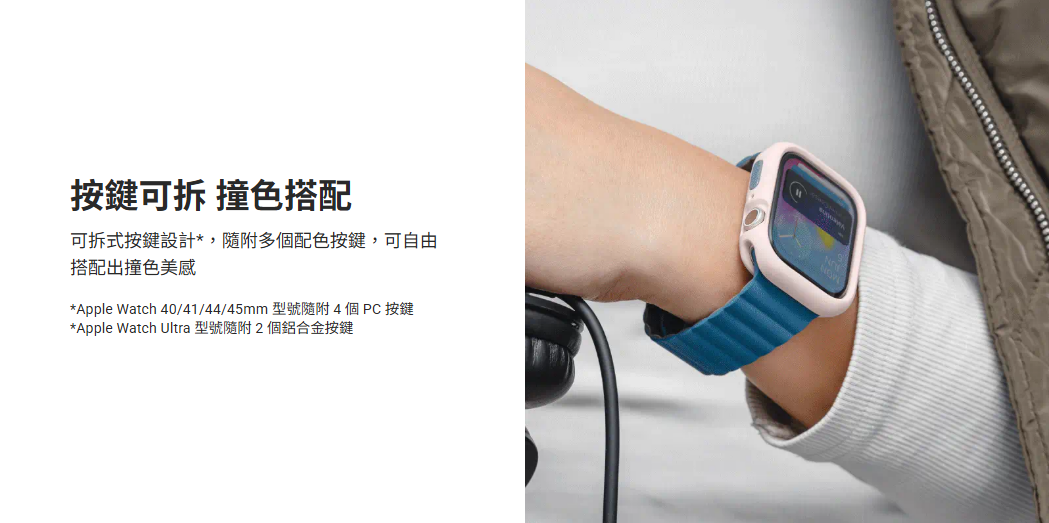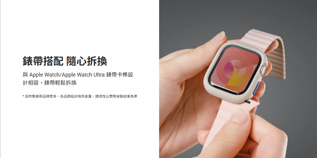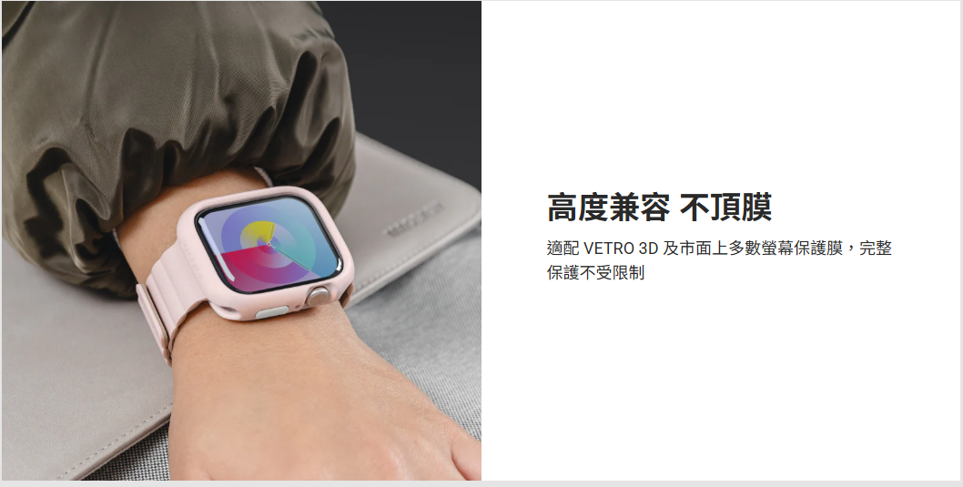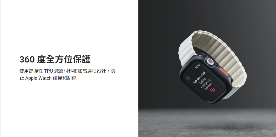 • 使用高彈性TPU減震材料和高於邊框設計,防止Apple Watch 碰撞和刮傷