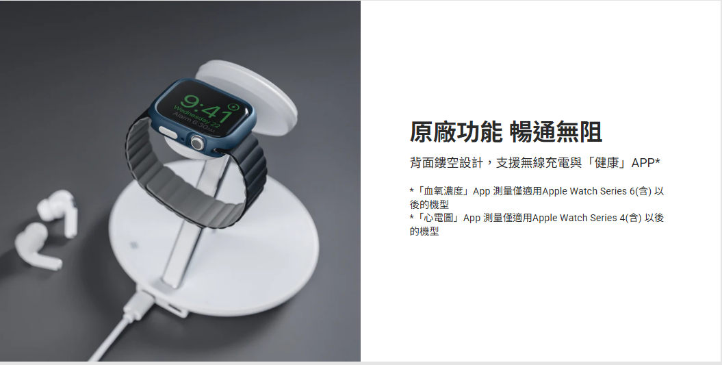 • 背面鏤空設計,支援無線充電與「健康」APP