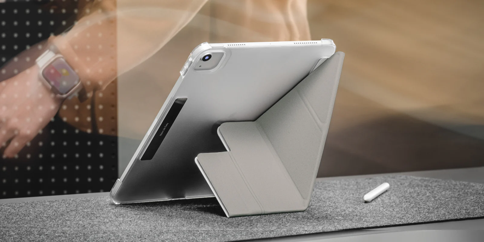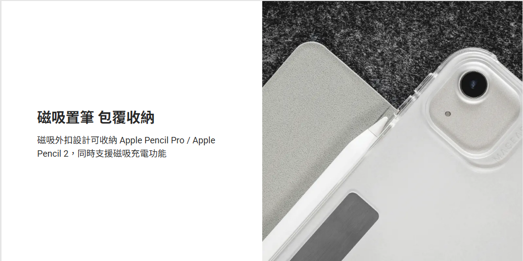 • 磁吸外扣可收納 Apple Pencil,支援磁吸充電功能