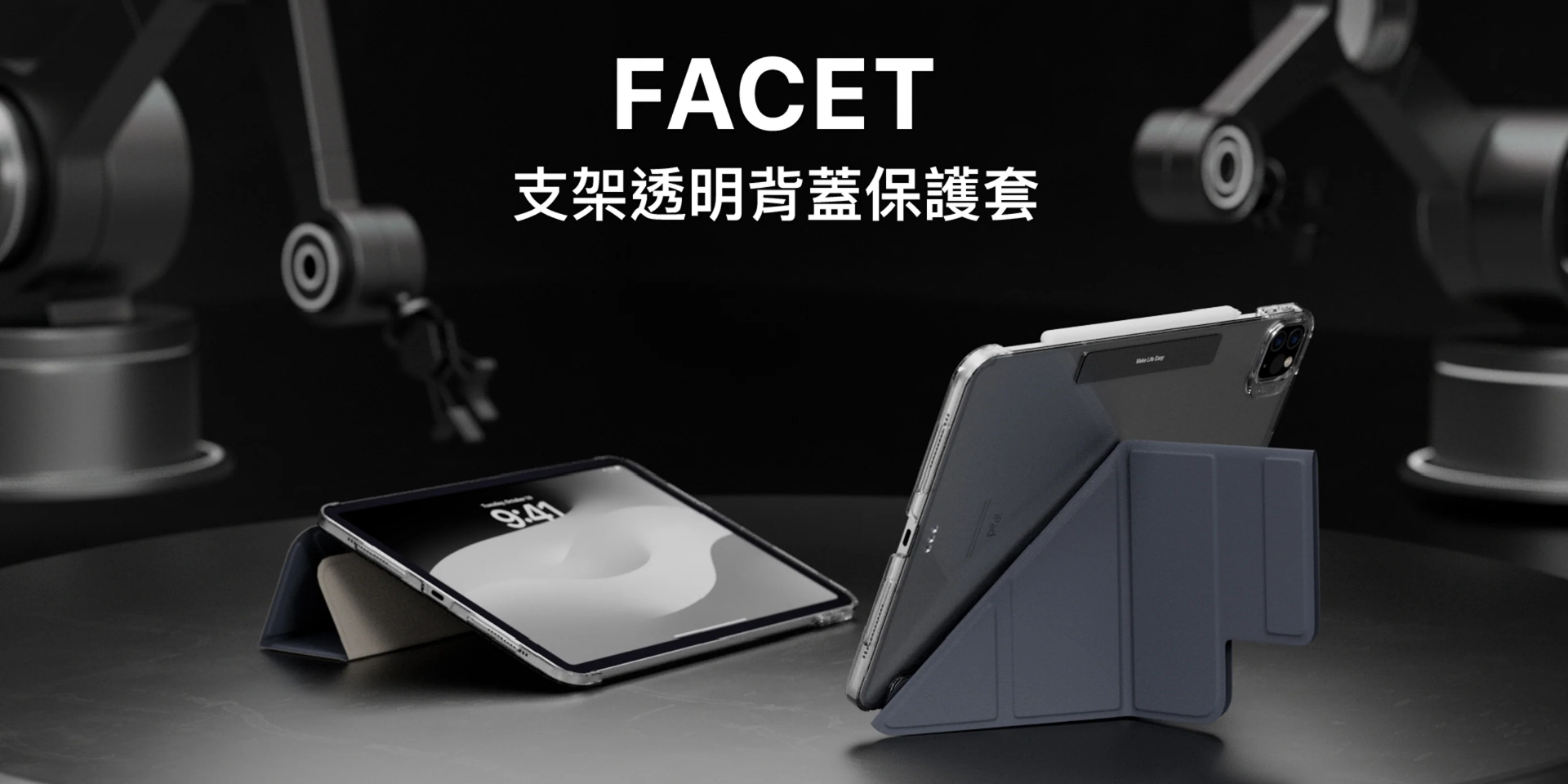 Facet 全方位支架透明背蓋保護套