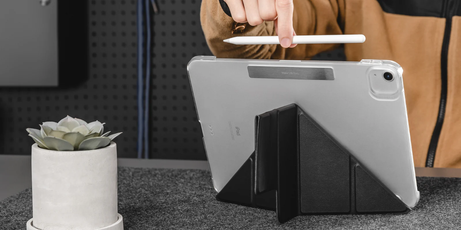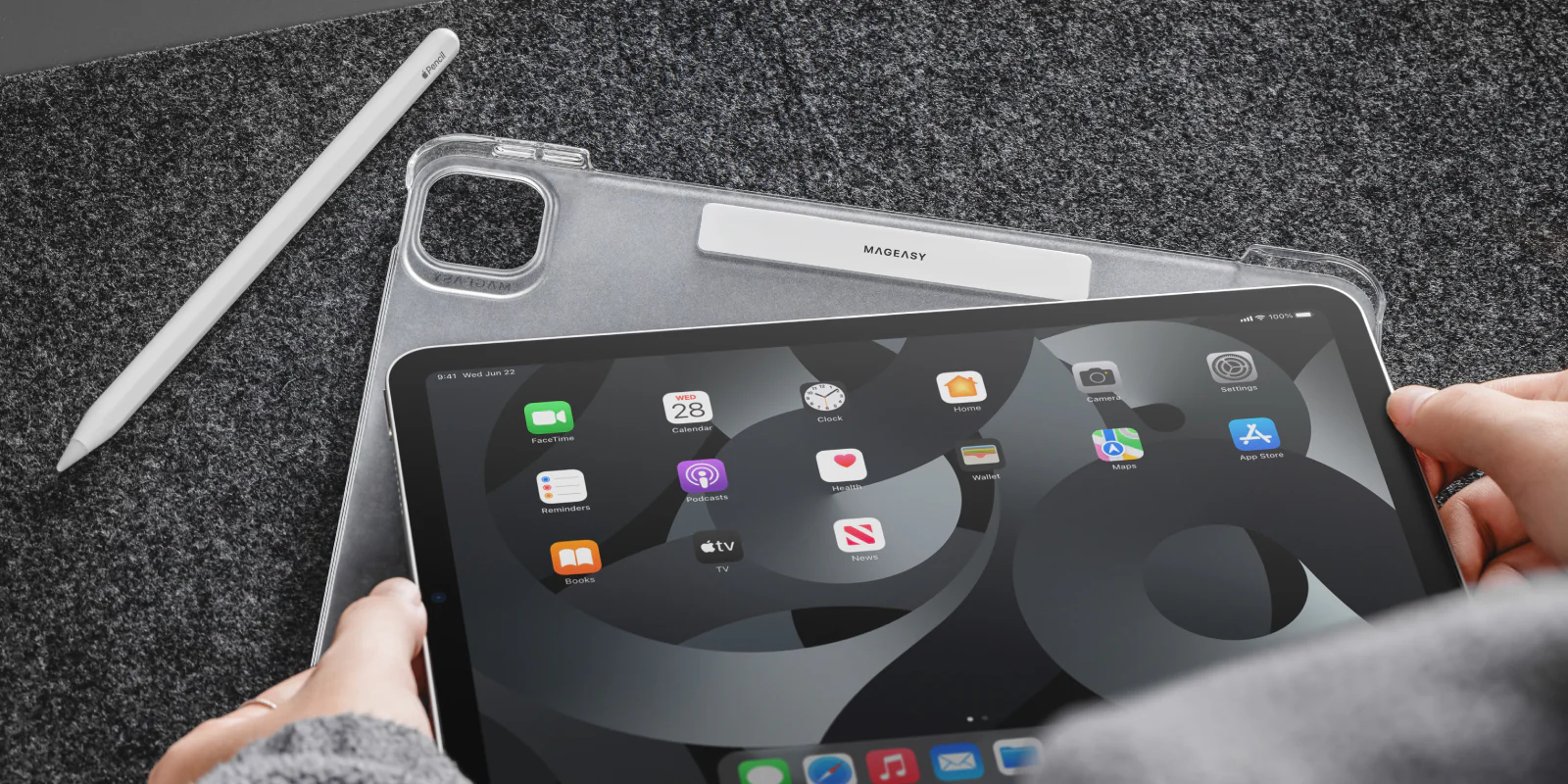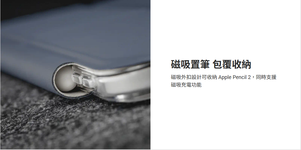 • 磁吸外扣可收納 Apple Pencil,支援磁吸充電功能