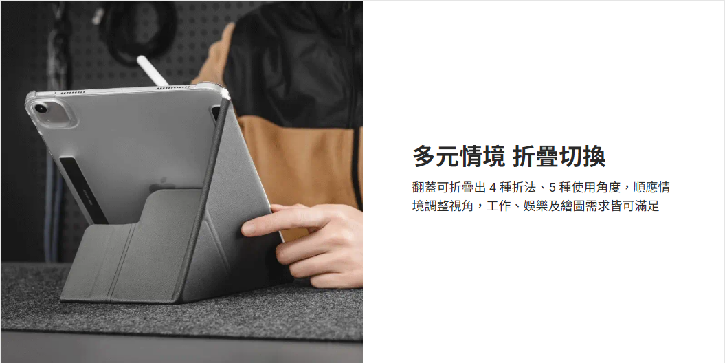 • 翻蓋可折出 4 種支架型態,滿足多種視角