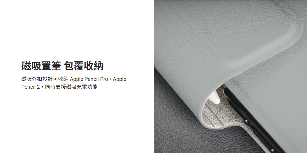 • 磁吸外扣可收納 Apple Pencil,支援磁吸充電功能
