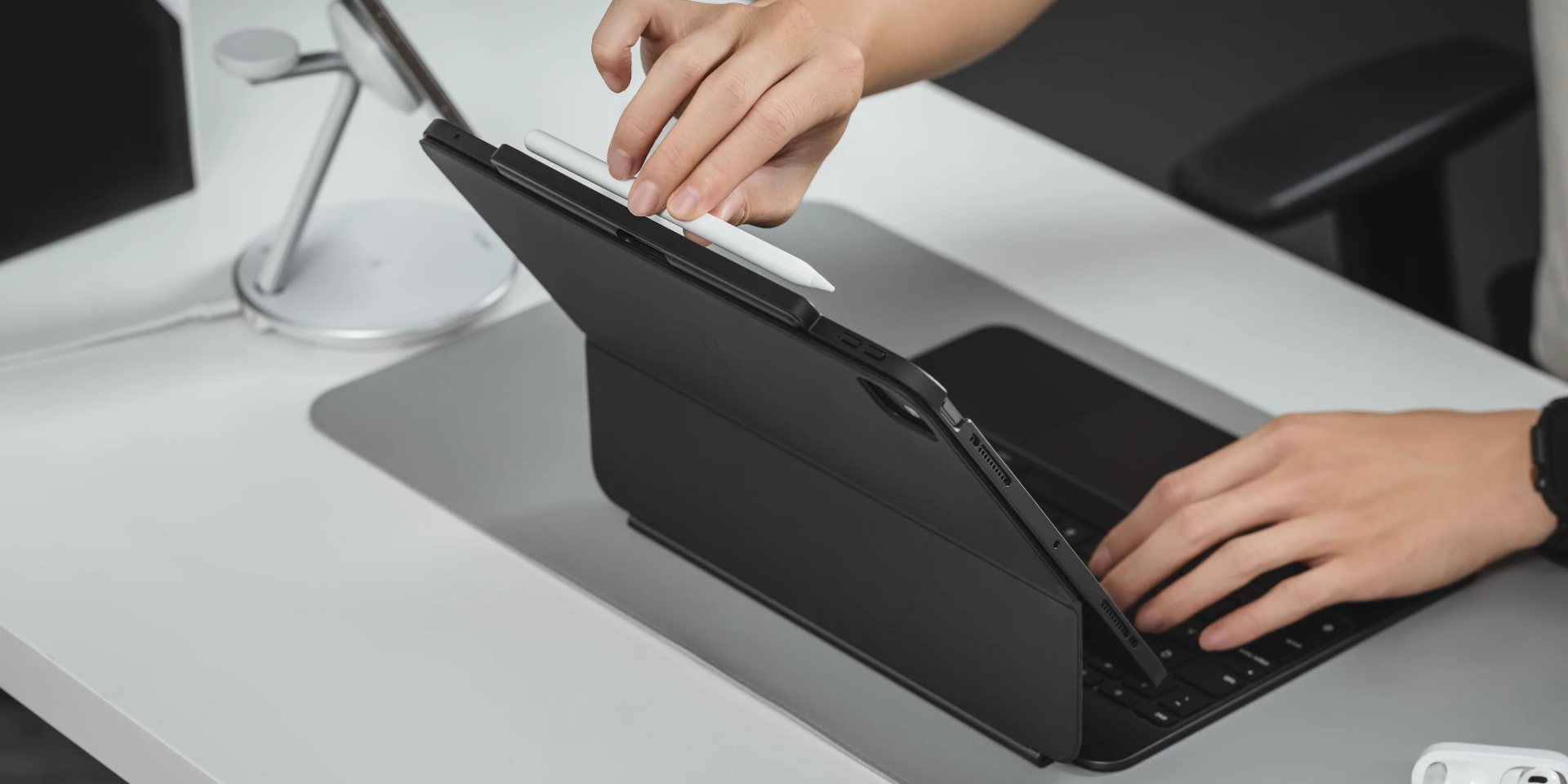 • 附有專用筆槽方便磁吸收納 ,並支援Apple Pencil無線充電功能
