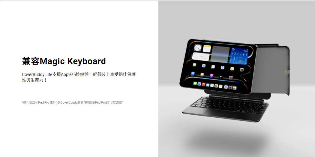 *適用2024 iPad Pro [M4]的CoverBuddy Lite 支援“適用於iPad Pro的巧控鍵盤”