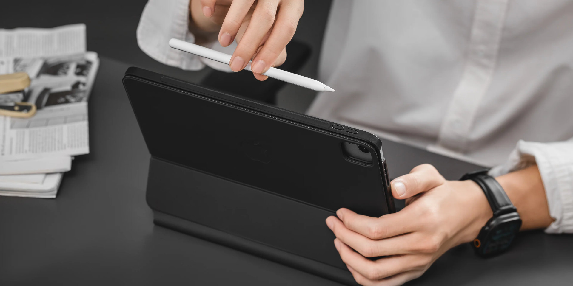 磁吸外扣設計可置放Apple Pencil Pro / Apple Pencil 2,同時支援磁吸充電功能