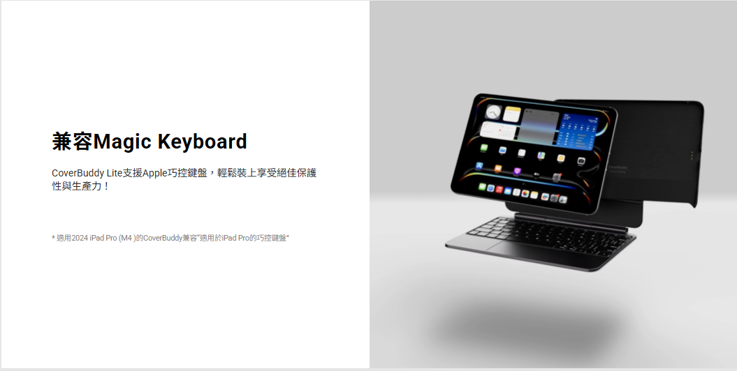 *適用2024 iPad Pro (M4)的CoverBuddy Lite 支援“適用於iPad Pro的巧控鍵盤”