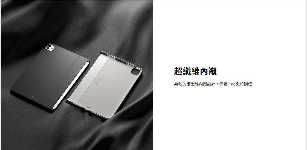 柔軟的細纖維內襯設計,保護iPad免於刮傷