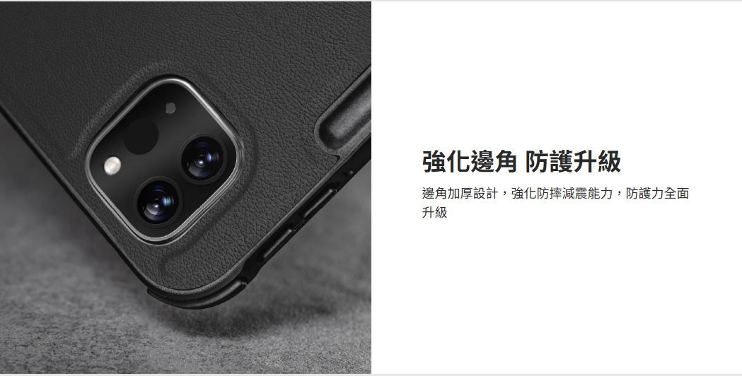 • 獨家 AIR-SHIELD 技術和輕薄外觀,邊角加厚提升防撞減震能力,保護力升級