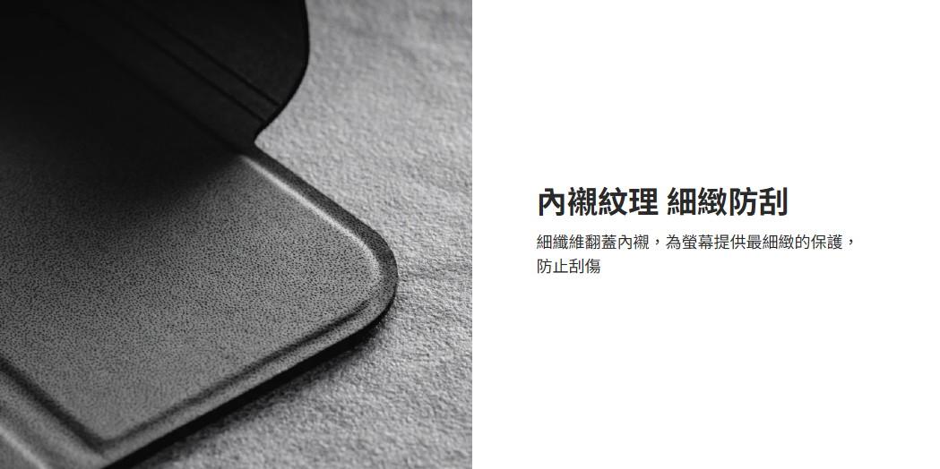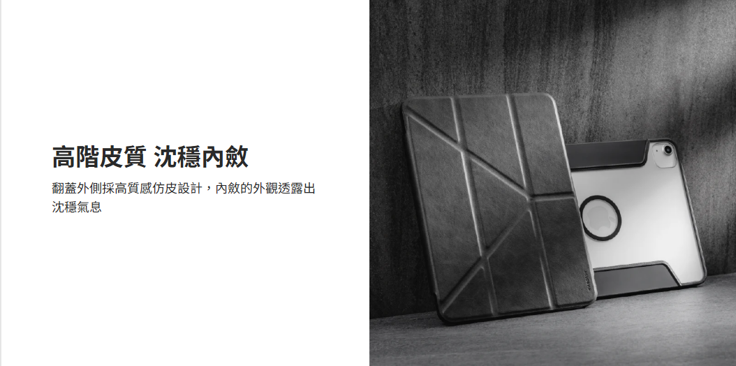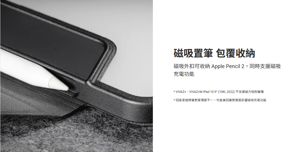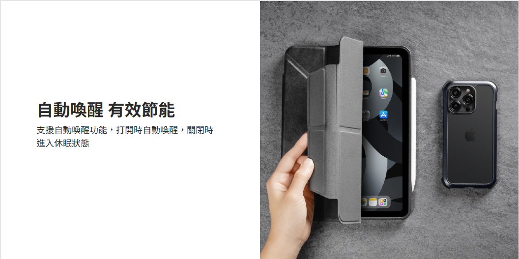 • 兩段式筆槽,可收納 Apple Pencil,有筆或無筆都能保持最好的使用體驗