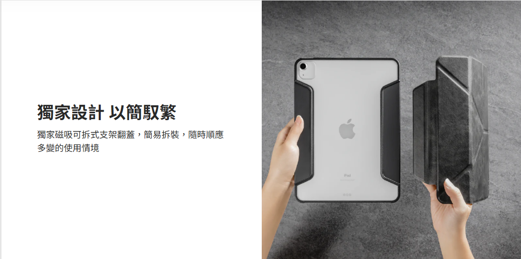 • 磁吸可拆式設計,可將保護殼與翻蓋分離,手持觀影或遊戲更輕巧方便