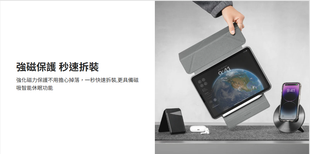 • 強磁保護,秒速拆裝,具備智能休眠功能
