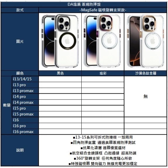 DA炫盾系列軍規防摔殼 MagSafe 防摔殼 手機殼 磁吸殼 手機架 防摔