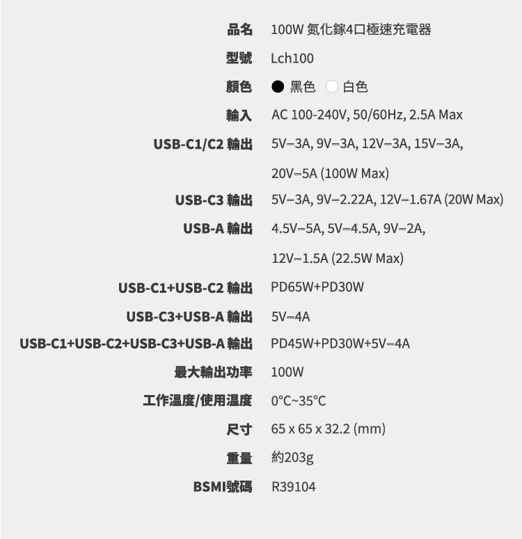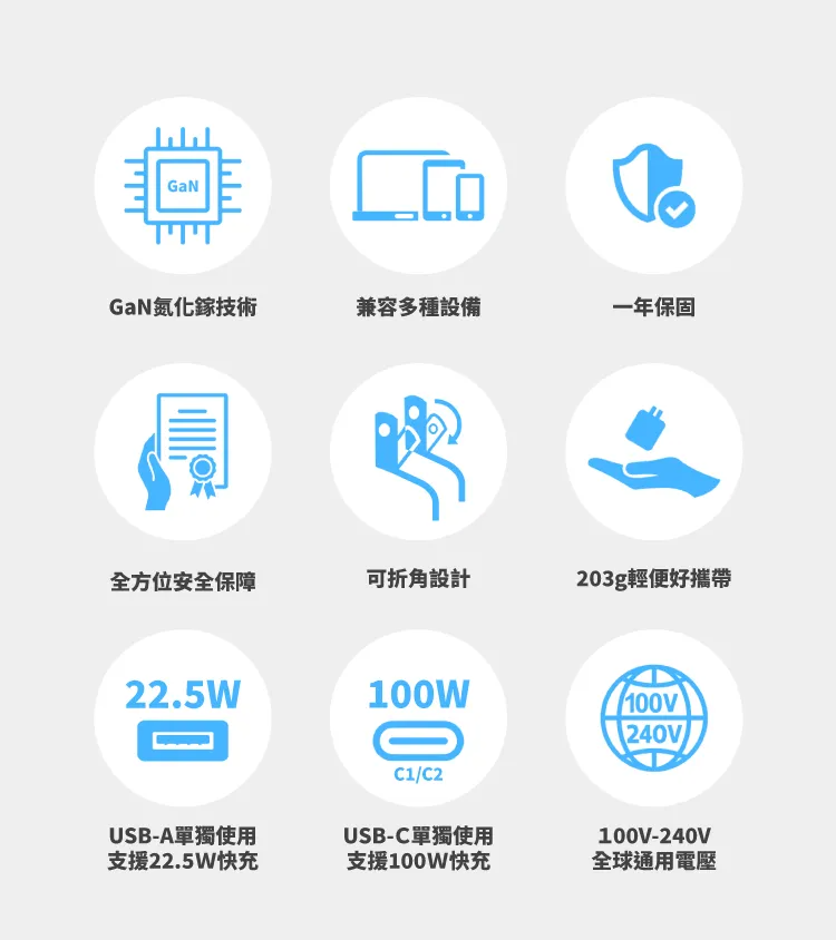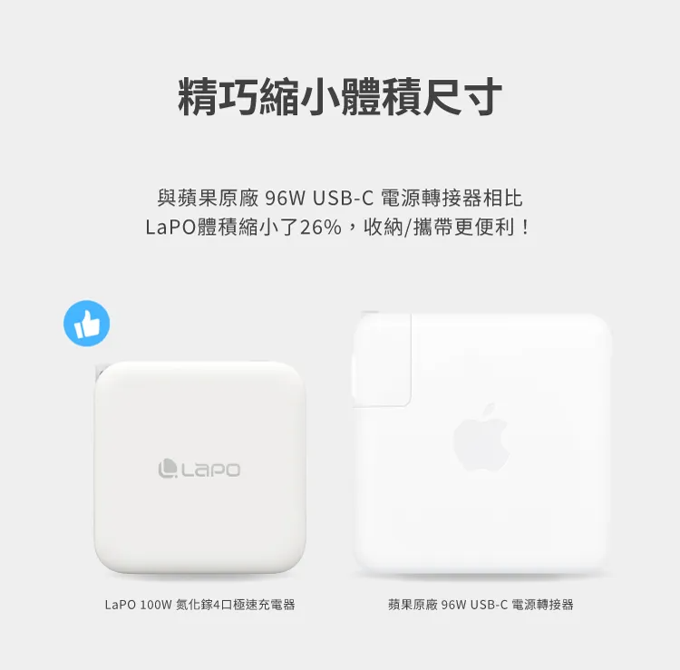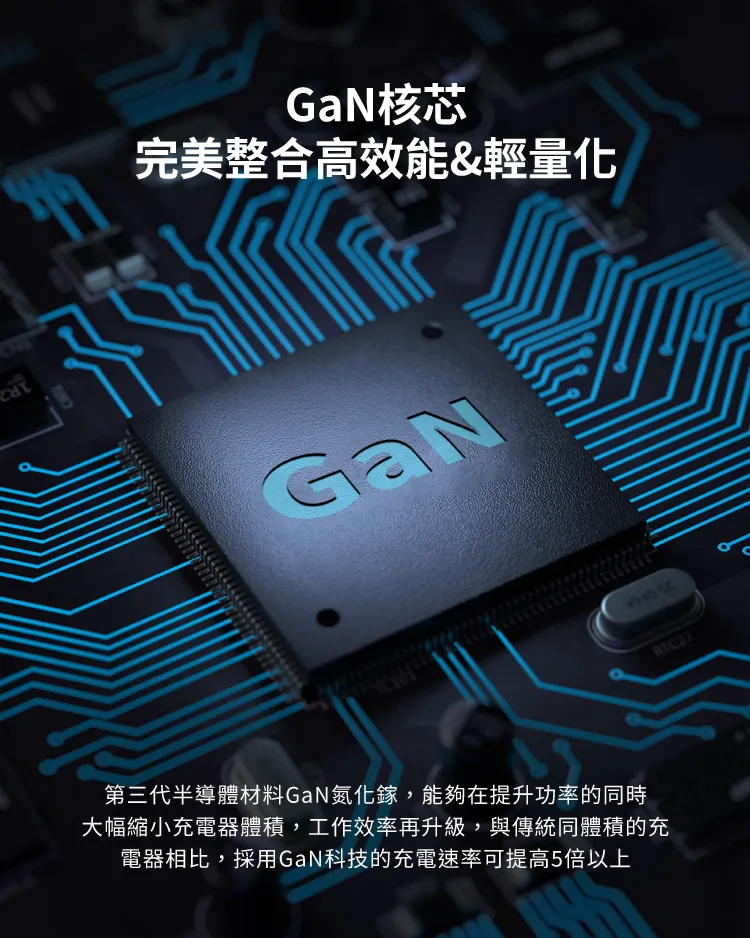 • 採用GaN氮化鎵最新第三代半導體科技,100W高功率迷你充電器
