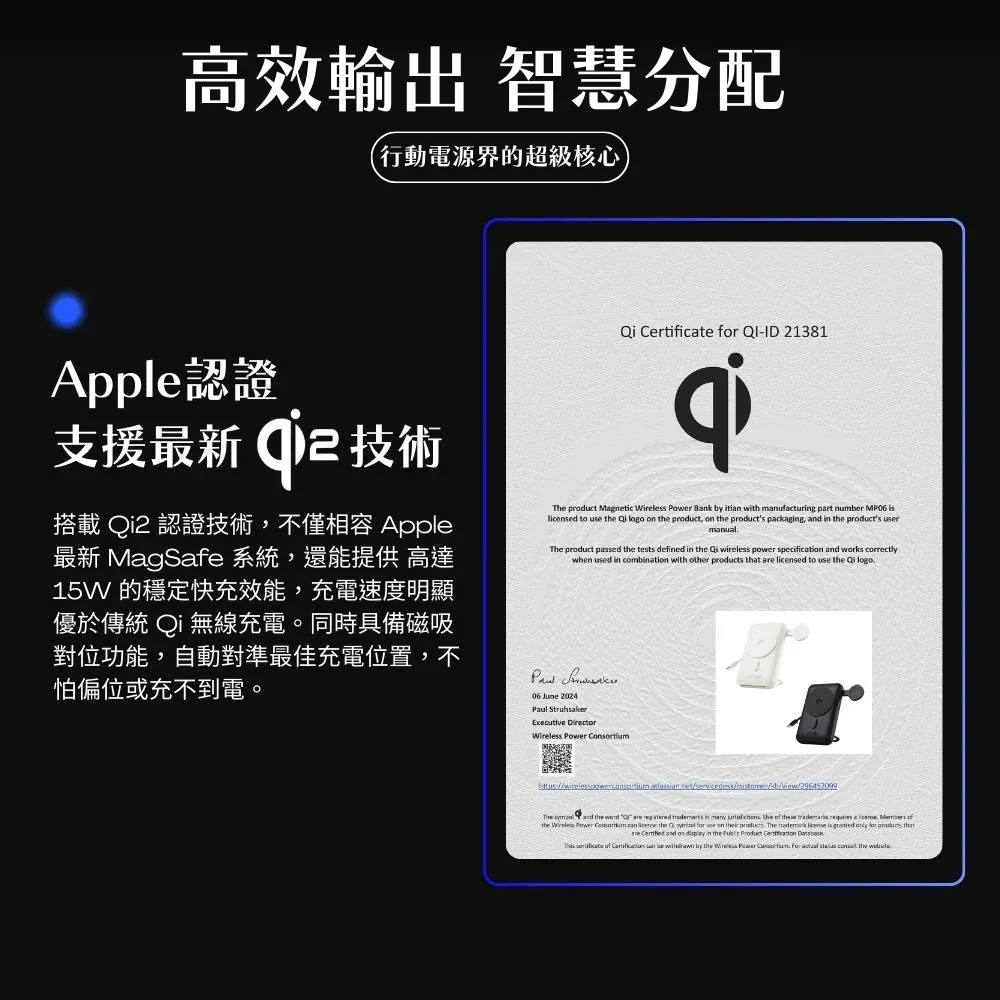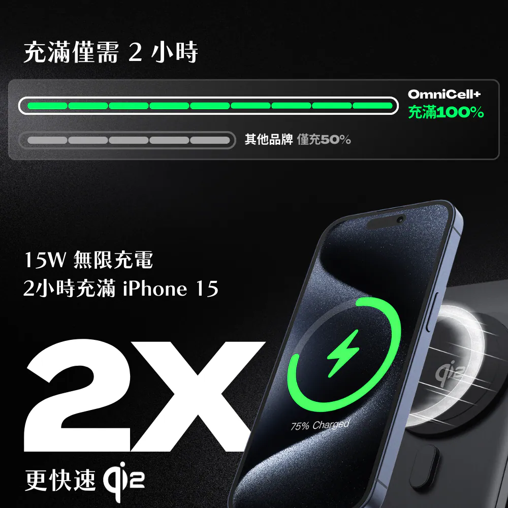 Qi2 無線快充技術:支援最高 15W 磁吸無線充電,充電速度提升 2