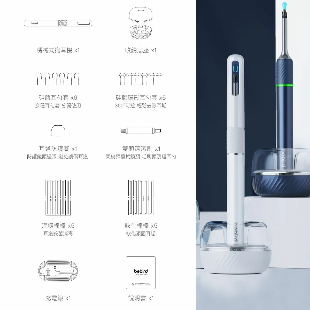 【Bebird|蜂鳥】NOTE 5 Pro 三合一機械式可視掏耳機