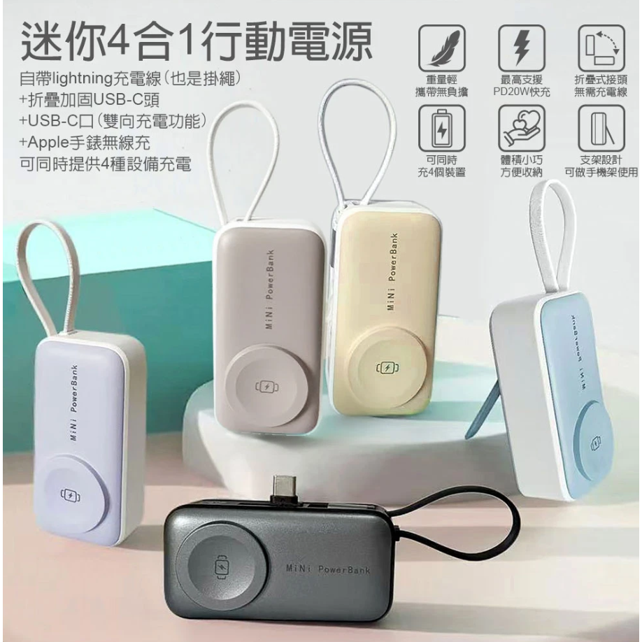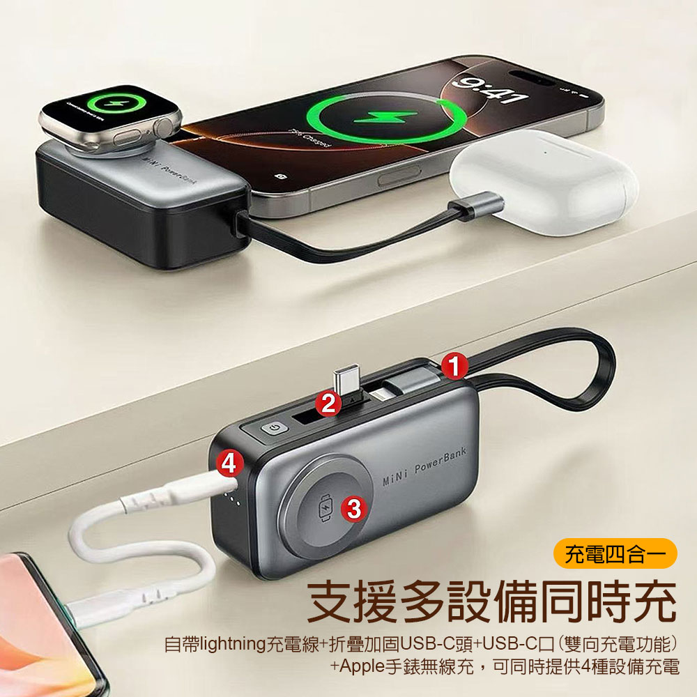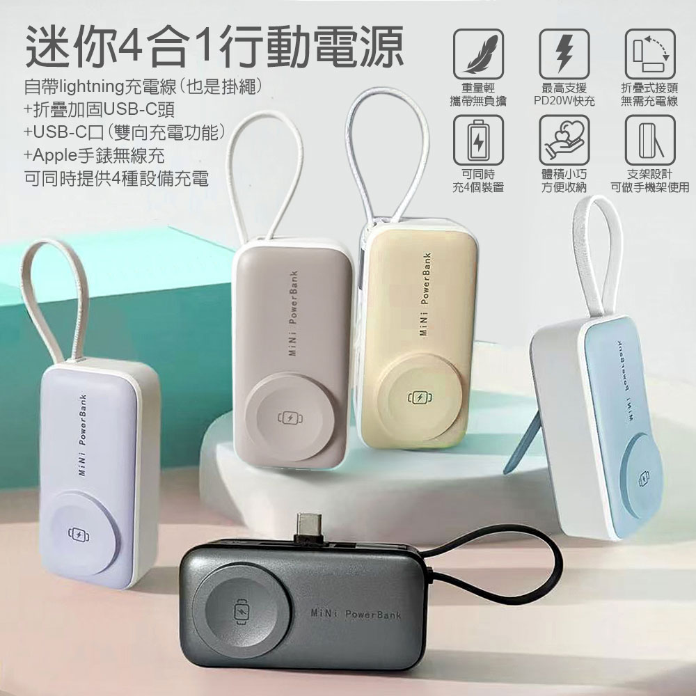 DA 口袋型四合一支架行動電源 5000mAh(行動電源/ 支架行動電源/快充/無線行動電源)