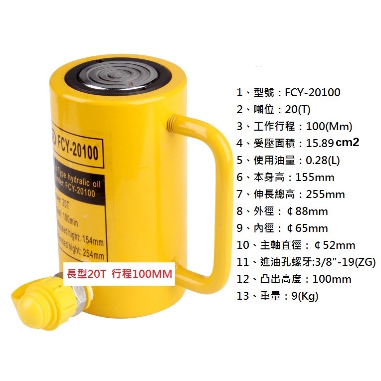 3. 活塞鍍鉻表面,延長活塞壽命 用途:液壓千斤頂,體積更小,並可產生更大的工作能力,特別在空間位置狹窄的地方使用,且具有輕便靈活、頂力大等功能,本產品廣泛適用於電力、化工、 鋼鐵、橋樑、機械等企業,並發揮其無窮動力!