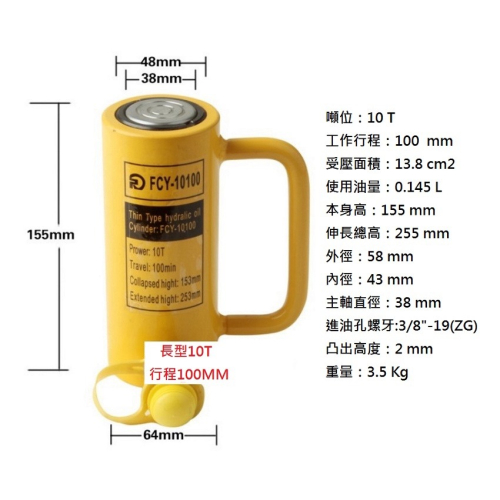 【現貨】長型液壓油壓千斤頂 油壓缸 分離式千斤頂 分體式千斤頂 10T 100mm FCY-10100