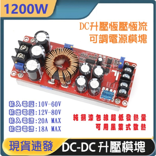 【現貨】1200W 20A 恒流升壓模組 DC-DC可調電源 大電流 電源模組 輸入10V到60V 輸出12V到80V