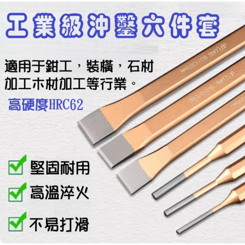 【現貨】6件套沖鑿組 鉻釩鋼鏨子 平頭沖子 衝子 敲擊 扁鑿 混凝土劈石器 平頭圓柱沖 沖孔器 中心沖 加厚 加硬