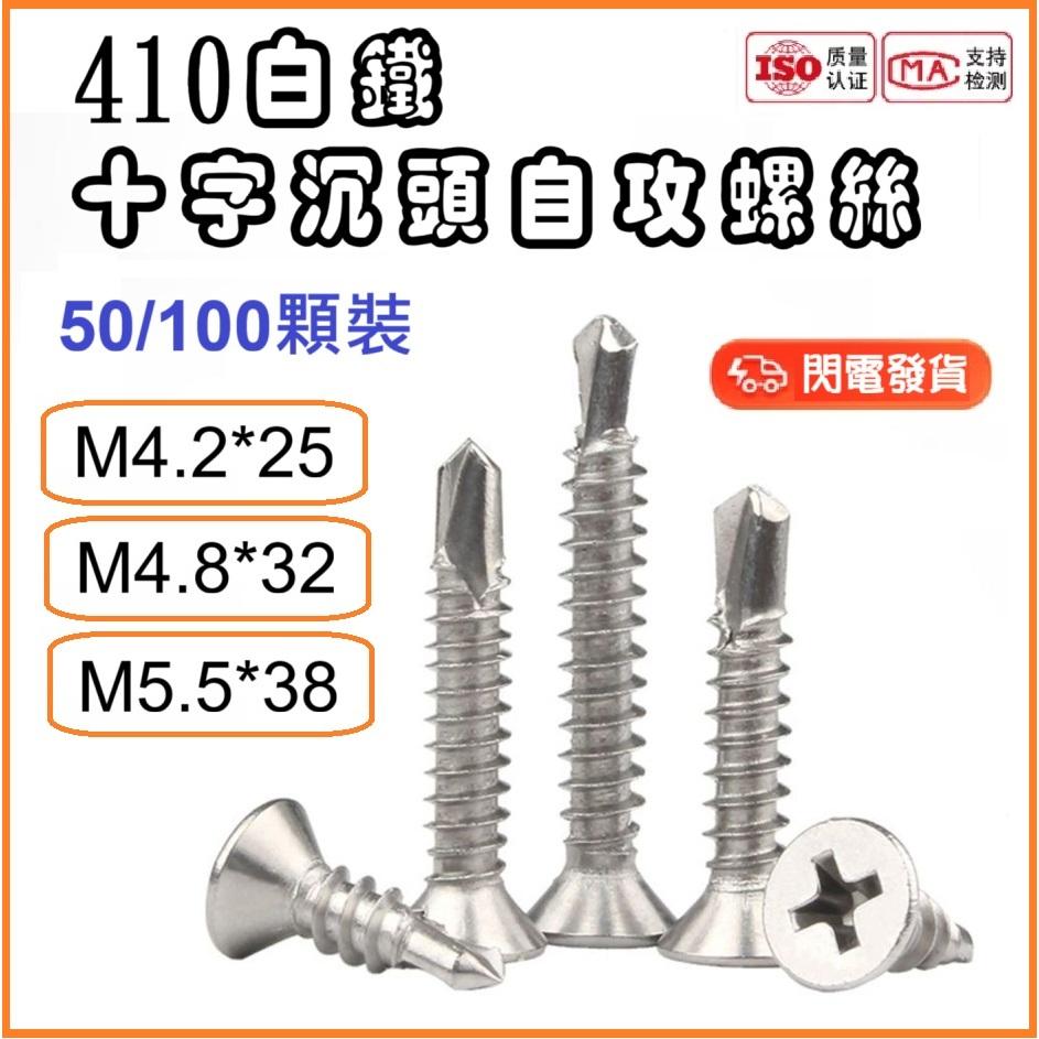 【現貨/常用規格】410白鐵 十字平頭自攻螺絲 沉頭鑽尾螺絲 50/100支 不鏽鋼 M4.2~M5.5