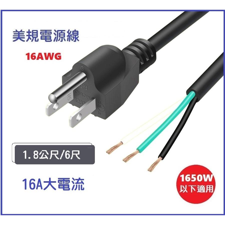 【大量現貨】電源線 美式三插 16AWG 粗線 1.8米 3x1.31mm 16awg 純銅 美規 單公頭 3芯 6尺