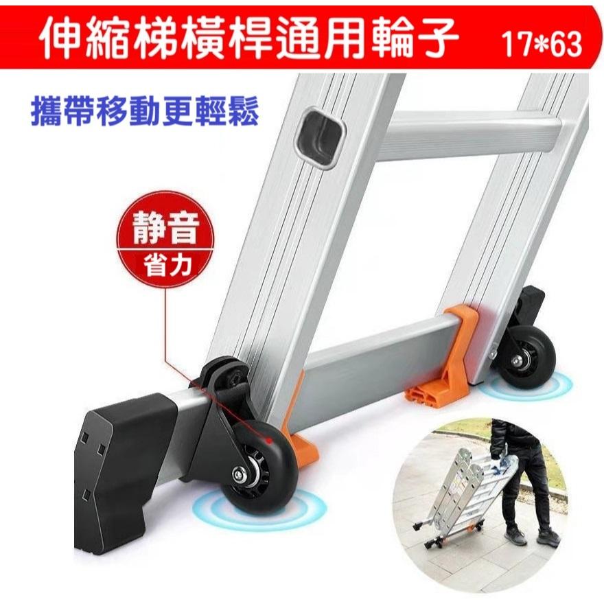 【現貨】鋁合金伸縮梯子 萬向輪 人字梯 伸縮梯橫桿通用滑輪 移動配件 折疊 關節