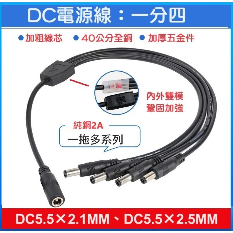【現貨-純銅芯】DC線 一出四 一拖四 一分四 電源線 40公分 安防監控電源線 DC5.5x2.1mm 攝影機 工程用