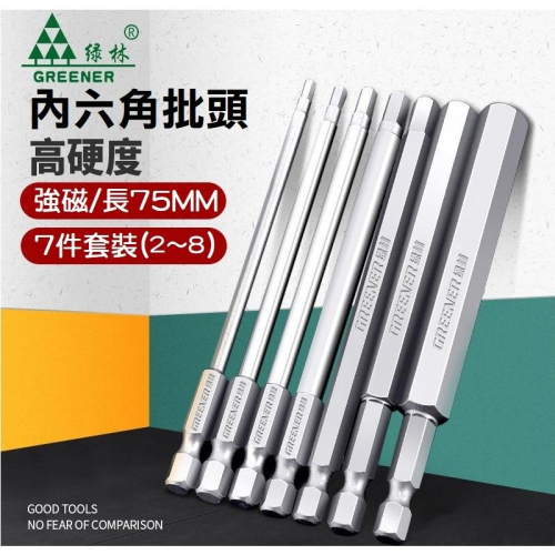 【現貨】綠林工業級 內六角批頭 8套件 6.35MM 六角柄 長75mm 氣動 電動 強磁性吸附 不輕易鬆脫 快速省時