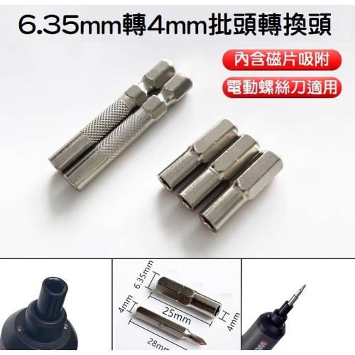 【現貨】6.35mm轉4mm 批頭轉換接杆 電動螺絲刀 大變小 標準批頭轉精密起子頭