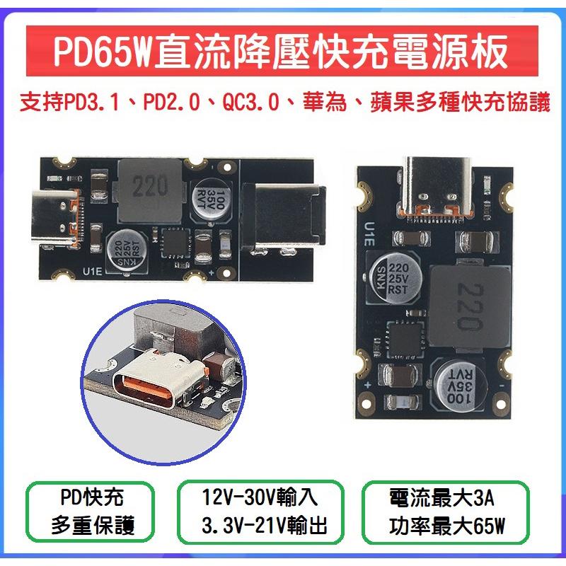 【現貨】PD65W快充模組 Type-C接口 全協議充電器模塊 輸入12V~24V 輸出3.3V~21V PD QC