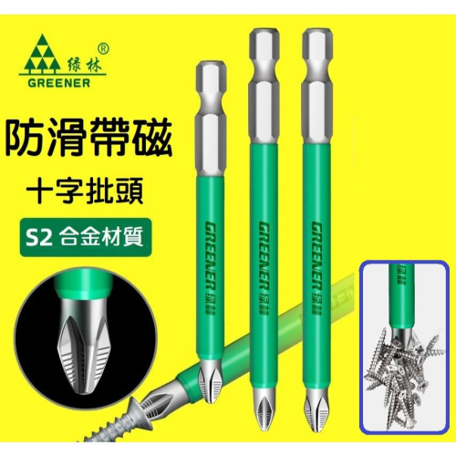 【現貨】防滑十字批頭 強磁圈 老師傅推薦 自攻螺絲必備 六角 高硬度 電動螺絲刀 手電鑽 綠林 帶磁起子頭