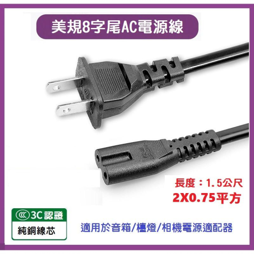 【全新現貨】 8字尾 八字 2孔 1公尺 AC 電源線 適用 筆電 變壓器 喇叭 相機 電池 充電器 0.75平方