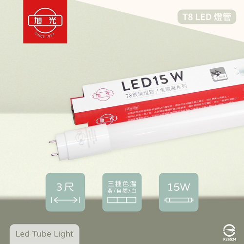 【旭光照明】LED T8 15W 白光 黃光 自然光 3尺 全電壓 日光燈管