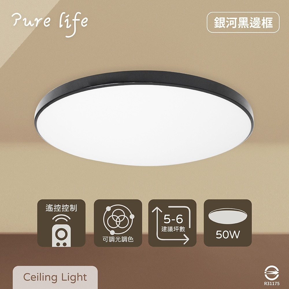 【純粹生活】無極調光調色 50W 銀河 黑框 全電壓 遙控 LED吸頂燈