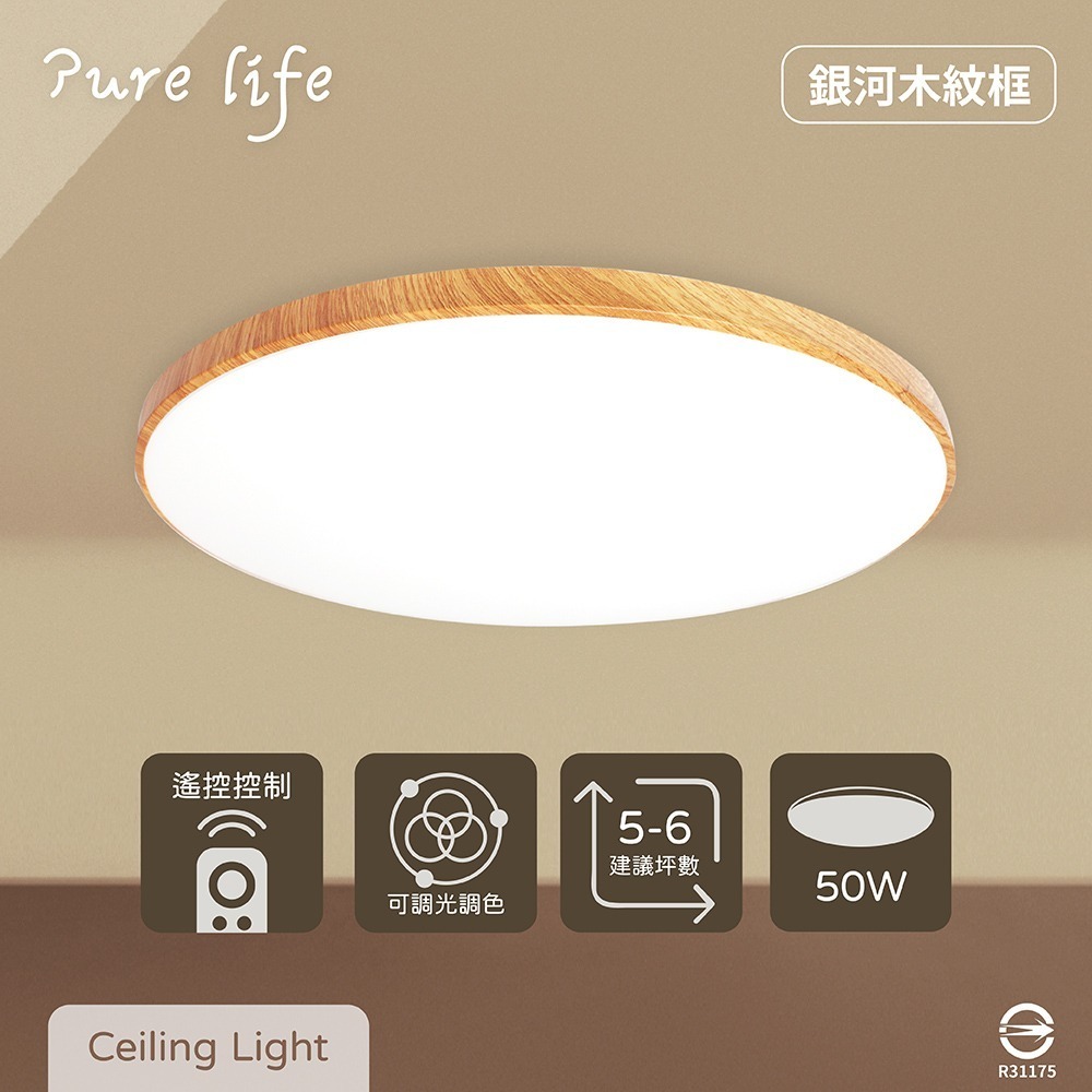 【純粹生活】無極調光調色 50W 銀河 木紋框 全電壓 遙控 LED吸頂燈