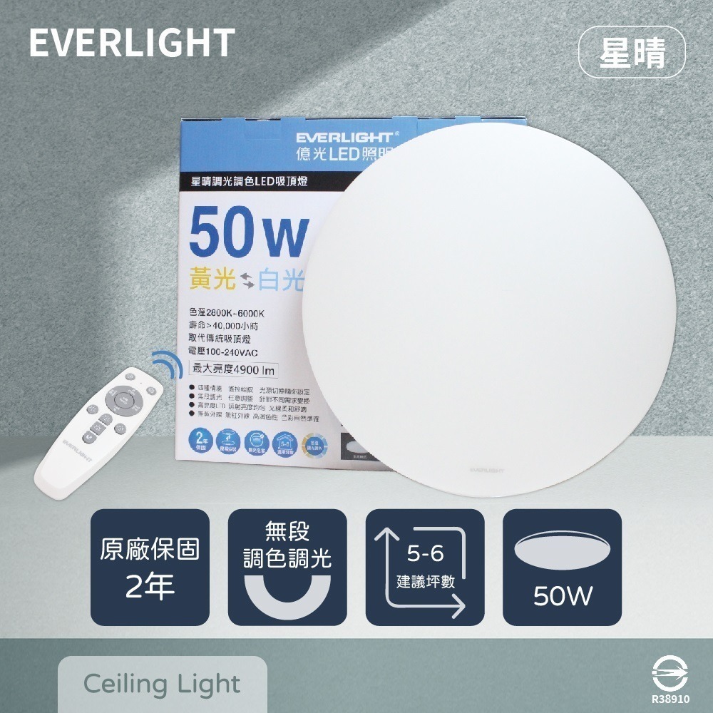 【純粹生活】EVERLIGHT億光 LED 星晴 50W 全電壓 調光 調色 遙控 LED 吸頂燈