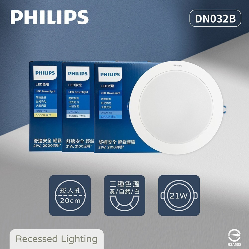 【純粹生活】飛利浦 PHILIPS LED DN032B 21W 白光 黃光 自然光 20cm 崁燈 另有 DN030B