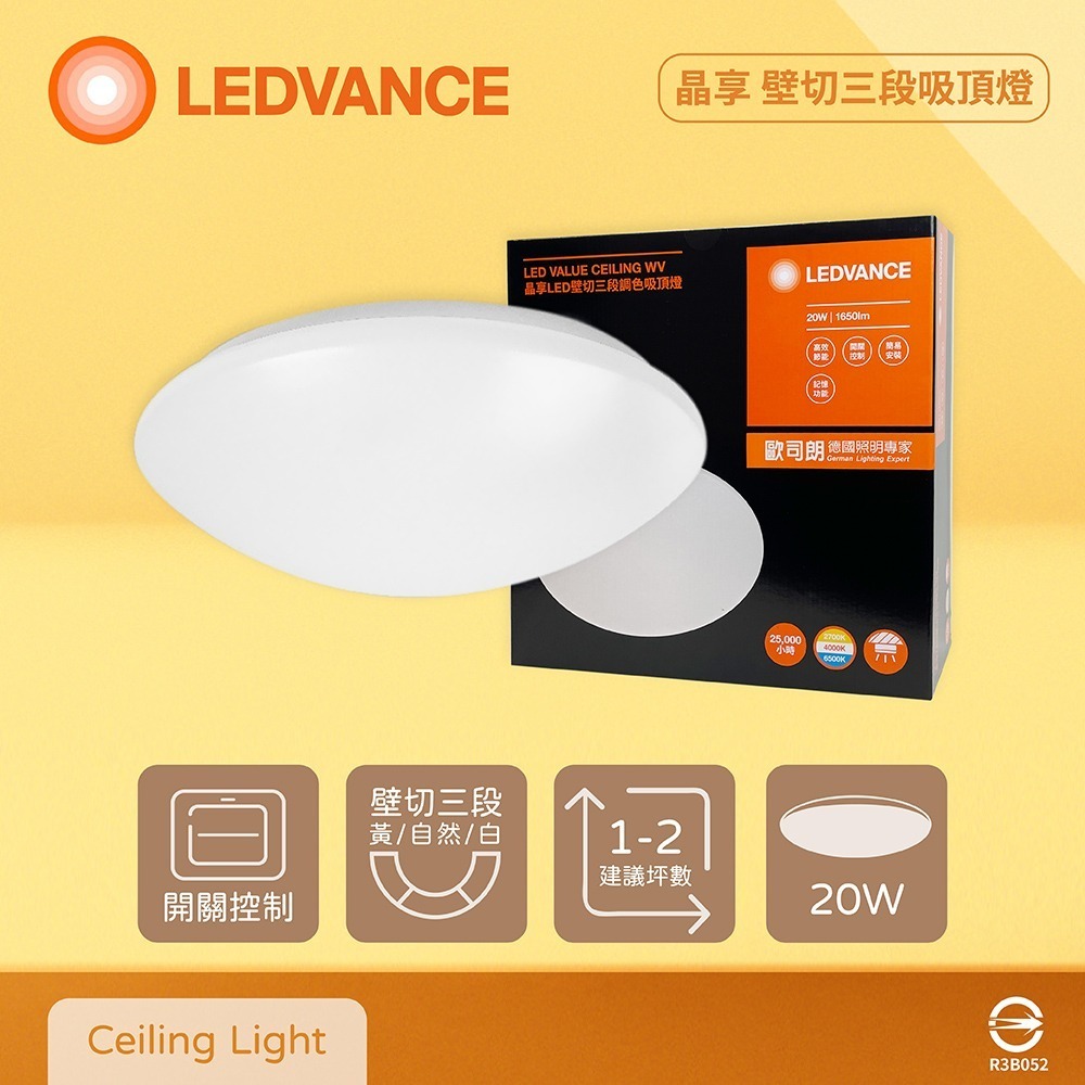 【純粹生活】歐司朗 OSRAM LEDVANCE 晶享 20W 全電壓 壁切三段調色 吸頂燈