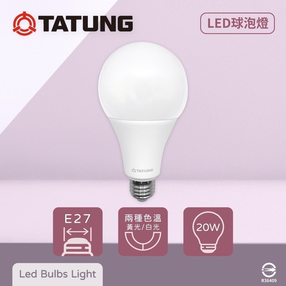 【純粹生活】大同 TATUNG 燈泡 20W 白光 黃光 E27 全電壓 LED 球泡燈