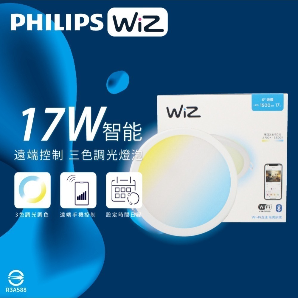 【純粹生活】Philips 飛利浦 LED WiZ 17W 110V APP手機控制 調光調色 智慧照明 15cm崁燈