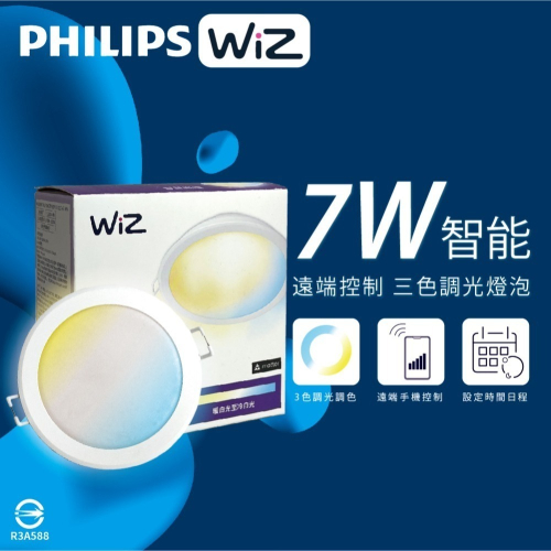 【純粹生活】Philips 飛利浦 LED WiZ 7W 110V APP手機控制 調光調色 智慧照明 9cm崁燈